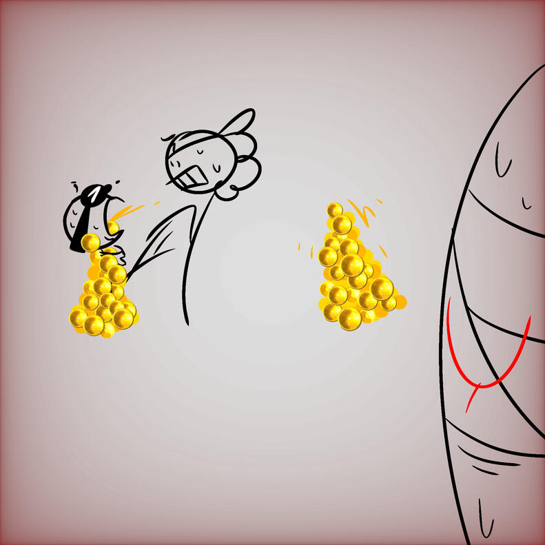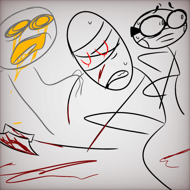 Goof's curses are muffled as your hatchet cuts through Jumpy's throat. you step on them to find their limbs and lob them off, apologizing as you do.