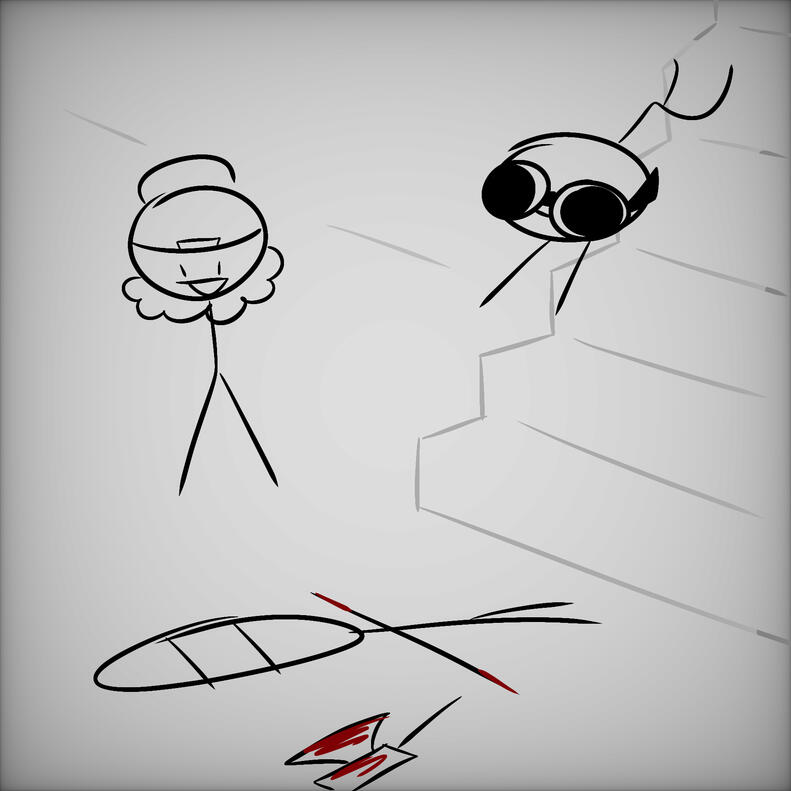 gracefully (sarcasm), you tumble down the stairs and faceplant into cold concrete.